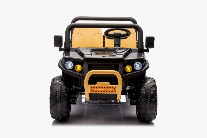 Dětské elektrické farmářské auto je navržen pro pohodlí a bezpečnost – má široké plastové sedadlo (56 cm), bezpečnostní pásy a nosnost až 35 kg. Díky stabilní konstrukci a odpruženému podvozku se dítě cítí jistě i na nerovném povrchu.